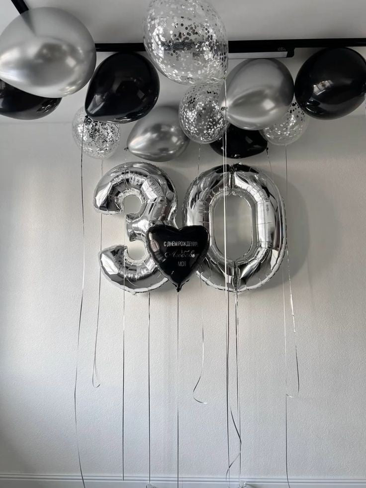 10 latex balloons+heart ballon with inscription (any)+2 pcs number balloons